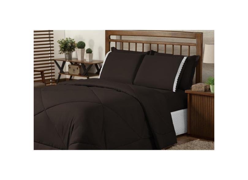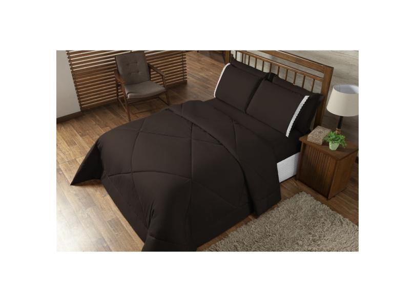 Kit Edredom Casal Padrão Dupla Face Aconchego 06 Peças- Tabaco