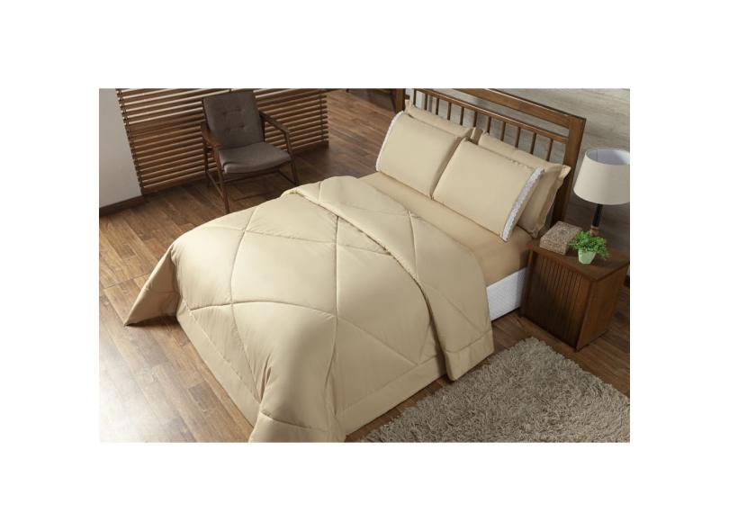 Kit Edredom Casal Queen Dupla Face Aconchego 06 Peças - Avelã