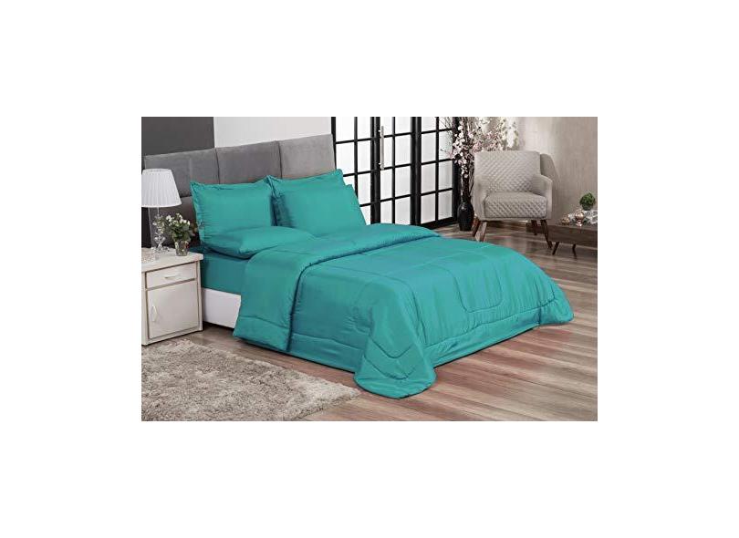 Kit Edredom Confort Casa Dona Dupla Face Casal Queen 6 Pçs Com Lençol Tiffany