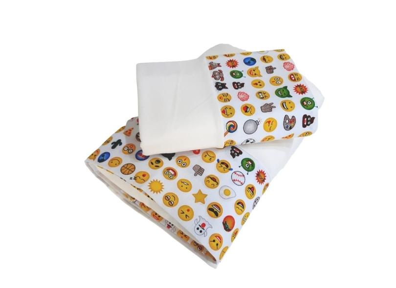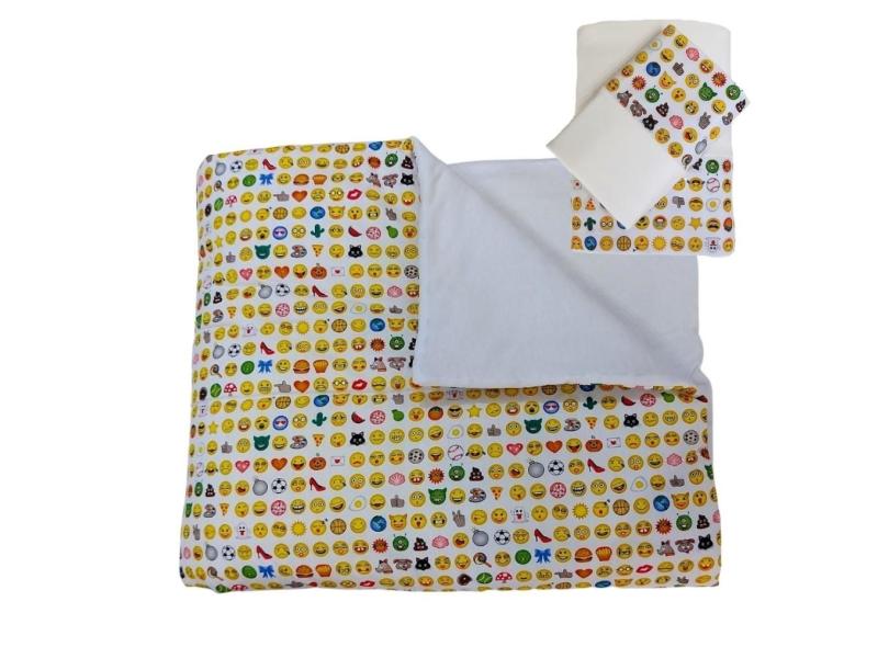 Kit Edredom e Jogo de Lençol Mini Cama Emoji Cru Arrumadinho Enxovais