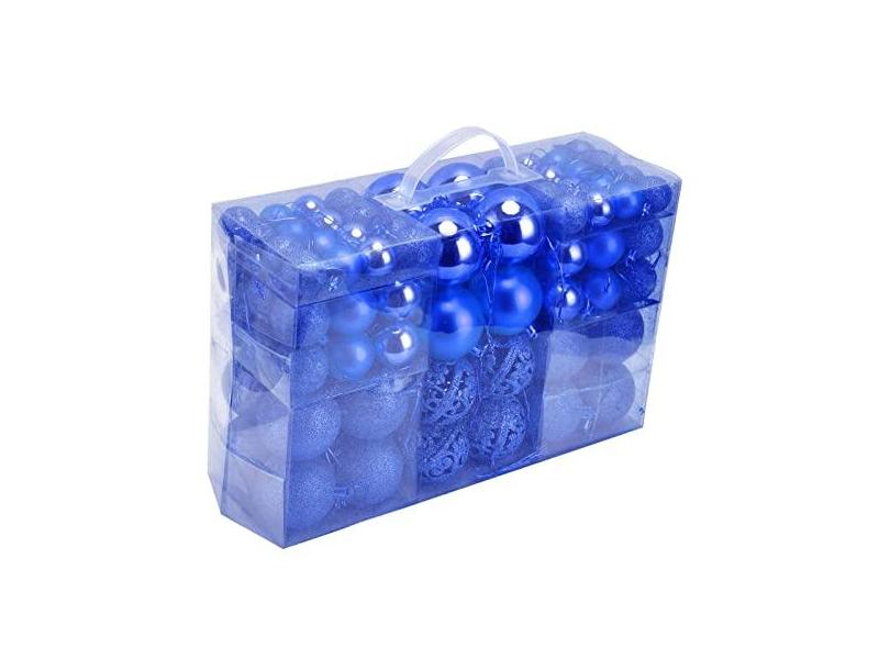 100 peças de enfeites de Natal inquebráveis para decoração de festa de árvore de Natal, pingentes (azul)