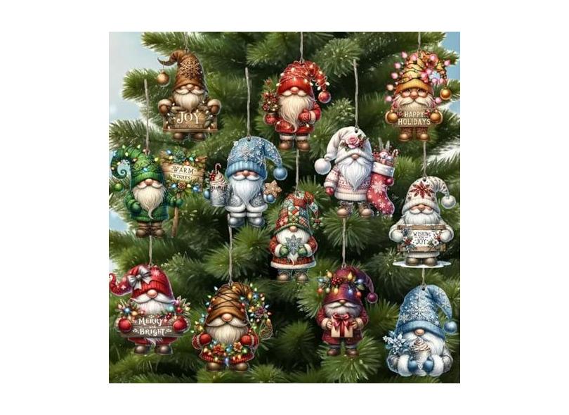 12 peças de enfeites de árvore de Natal de madeira, ornamentos de pendurar de Papai Noel de madeira feitos à mão para decoração de árvore de Natal para pendurar enfeites de árvore de Natal suprimentos
