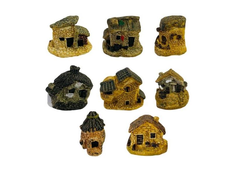 8 peças mini estatuetas de casa acessórios Village Hut estatueta casa de campo DIY jardim de fadas mini acessórios de casa micro decoração de paisagem ornamentos para vasos de flores bonsai suculentas