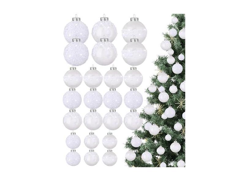 Civaner Conjunto de 24 peças de enfeites de bola de Natal com glitter, 8 cm, 6 cm, 4 cm, enfeites de árvore de Natal, bolas à prova de estilhaçamento de lantejoulas para decoração de casa de Natal