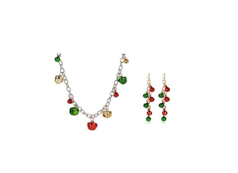 Conjunto de joias de sinos de Natal, vermelho, verde, enfeite de sininho, corrente longa de prata, brincos pendentes para mulheres, Natal, Ano Novo, festival, inverno, festa, decoração, joias,