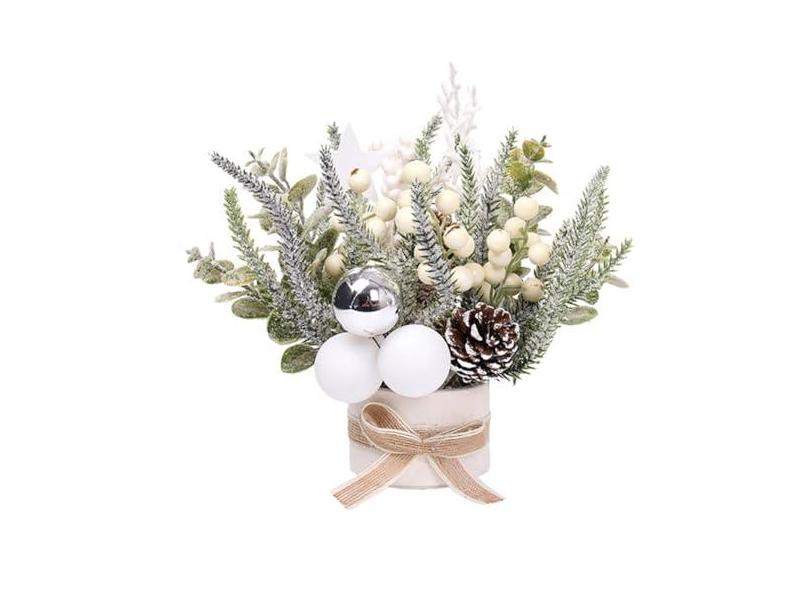 Decoração de mesa pequena para árvore de Natal, mini árvores artificiais com pinhas, bolas de Natal, flocos de neve, plantas artificiais decorativas, férias, inverno, mesa, centro de mesa, decoração
