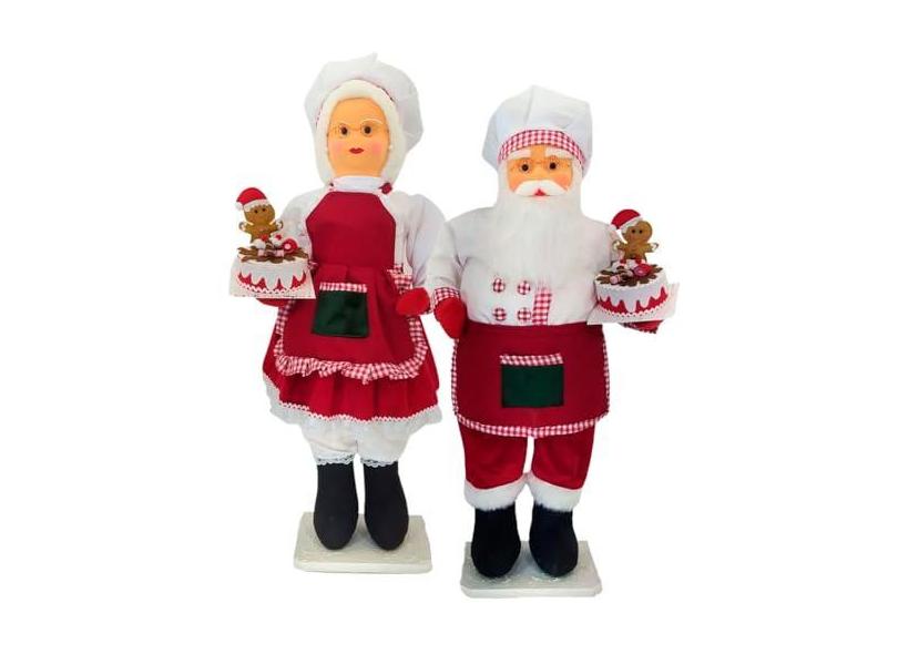 Dupla Bonecos Natalino Mamãe E Papai Noel Confeiteiros 90cm