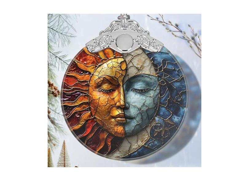 Enfeite de Natal - Enfeite de sol e lua de vitral - Decoração de casa de Natal - Enfeite de árvore de Natal - Ornamento de Natal - Ideias de presente de feriado - Troca de presentes - Sol e Lua