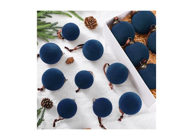 Foilswirl 18 bolas de Natal de veludo, enfeites de bola de árvore de Natal flocados a granel, enfeites de Natal de veludo de plástico, decoração para pendurar em árvore de Natal, 5 cm, 6 cm, 8 cm