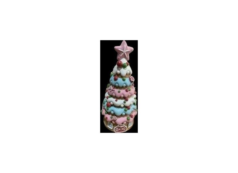 Hodao Decorações de Casa de Vila de Natal Casa de Gengibre com Tema de Árvore de Natal, Alimentado por Bateria (2 AAA) 21,8 cm H Decoração de Árvore de Natal de Resina para Casa Festiva Interior ou
