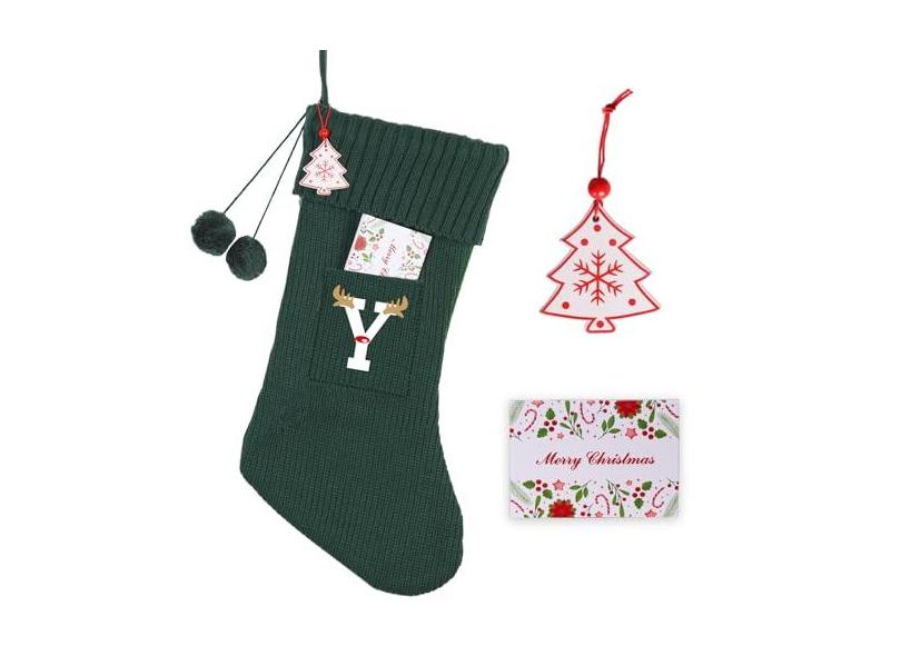 K-MLICE Meias de Natal de 45,7 cm de malha grande monograma meias de Natal personalizadas iniciais para decoração de casa de Natal em família, branco, vermelho, verde, árvore, lareira, ornamentos,