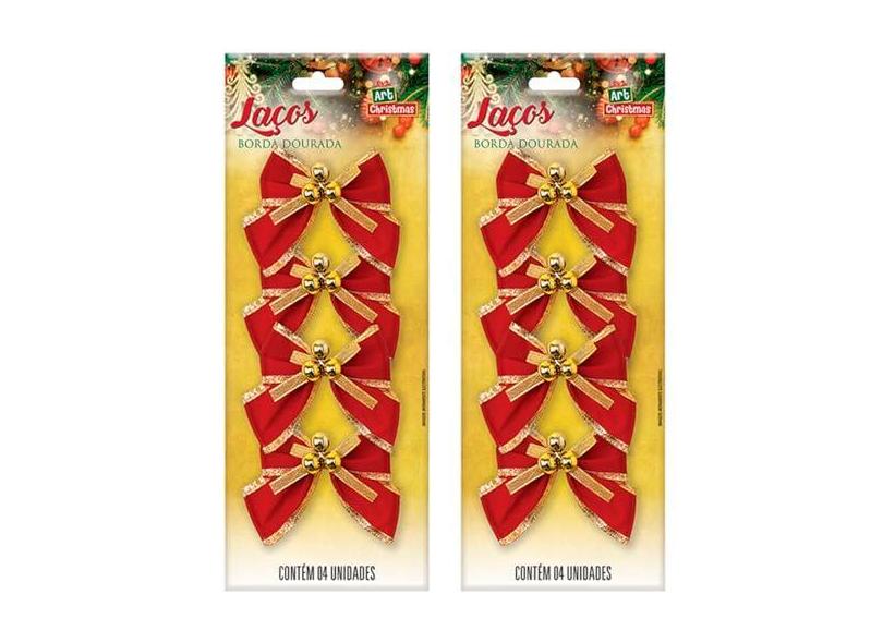 Kit 16 Laços De Bolinhas 10cm Pingentes Dourado Brilhante