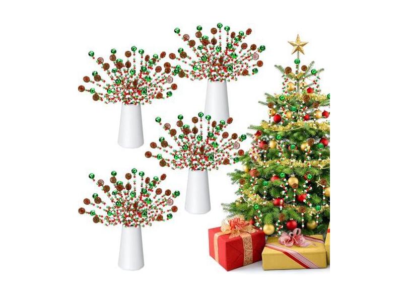 Liliful 40 peças de decoração de Natal de bengala doce, vermelho, verde, enfeites de Natal, incluindo tiras de pirulito torcidas de plástico e tiras de sinos para mesa de centro de mesa de Natal