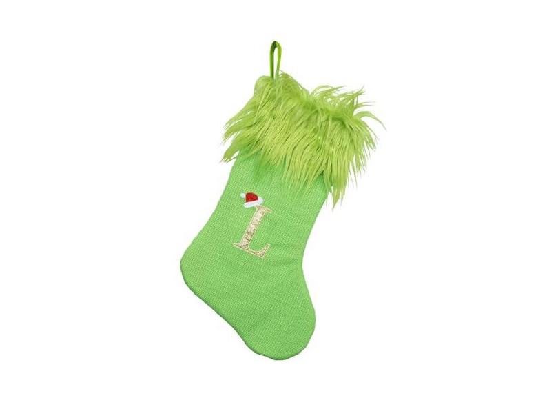 Meias de Natal com monograma, meia de Natal personalizada verde com inicial, 50 cm Costomized Xmas Stockings com letra, grande malha bordada de Natal (meia verde inicial G)