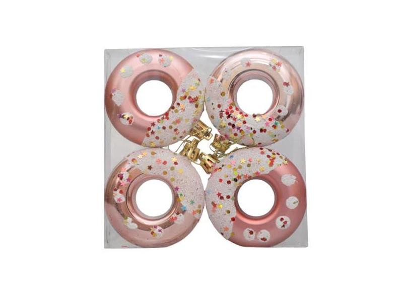 menolana 4 peças de enfeites de natal donut lembrancinhas de festa pingente de árvore de natal donut decoração pendurada para janela festivais, Rosa Ouro