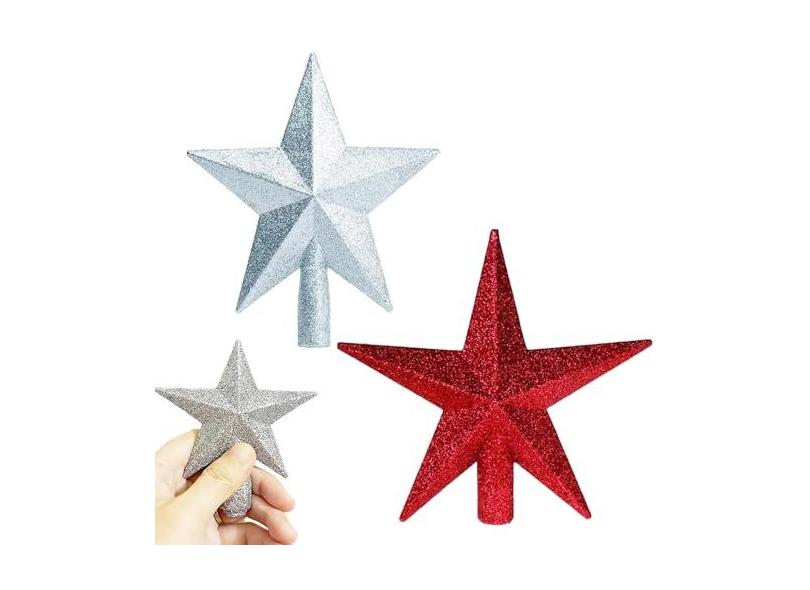 Mini enfeite de estrela com glitter – 2 peças de enfeite decorativo pequeno de Natal com estrela de Belém 9 cm