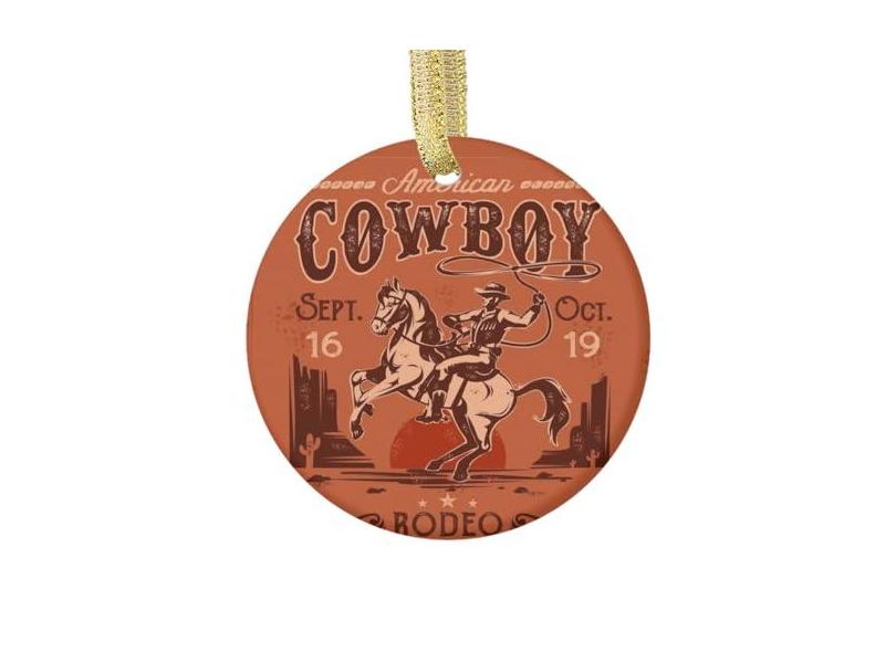 Ornamentos de cerâmica vintage de cowboy do velho oeste com pingente de porcelana para pendurar em árvore de Natal para presente de decoração de férias em casa