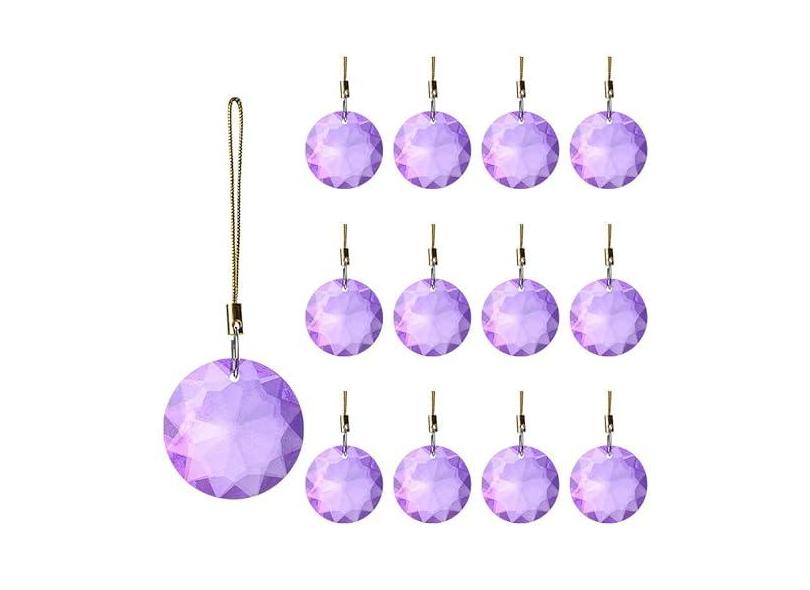 Pacote com 12 peças de enfeites de Natal de cristal para decoração de diamante para pendurar na árvore K9 fios de guirlanda de cristal para pendurar enfeites de Natal redondos para árvore de Natal,