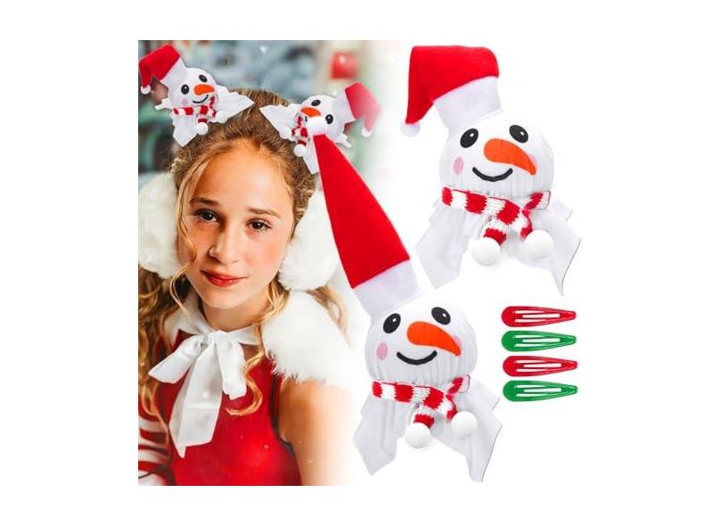 Palksky Grampos de cabelo de Natal, 2 peças de acessórios de cabelo fofos de boneco de neve de Natal para cosplay, fantasia de festa feminina e meninas, enfeite de cabeça de Natal para suprimentos de