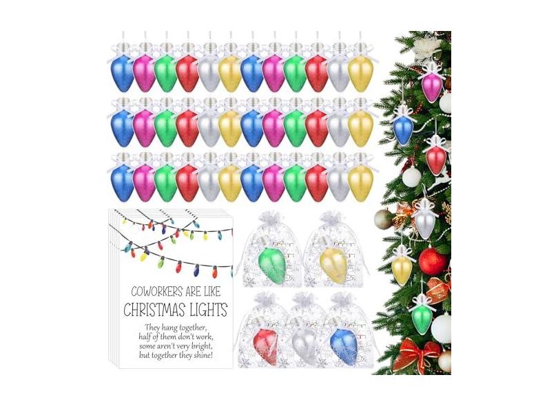 Riceshoot Presentes de agradecimento de Natal para colegas de trabalho, enfeites de plástico coloridos, cartões de agradecimento de funcionários e sacos de organza de floco de neve, presentes de