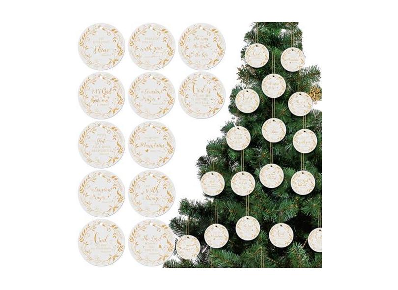 Suzile 12 peças de enfeites de cerâmica com versículo da Bíblia de Natal em forma de livro cristão enfeite de acrílico para pendurar decorações religiosas de Natal com citação inspiradora para