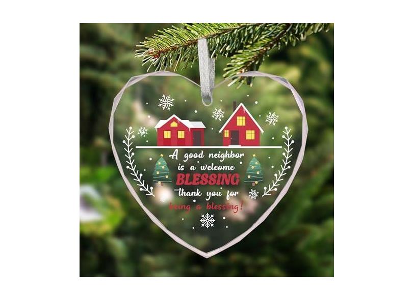 Vorruil Presentes de Natal para vizinhos, enfeites de Natal elegantes de coração, presente de enfeite exclusivo para vizinhos, presentes de agradecimento para amigos vizinhos, decoração de árvore de