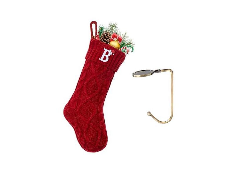 VRFASHION Meias de Natal com iniciais, meias de Natal bordadas com letra B, monograma grande de 45,7 cm, meias de Natal tricotadas com monograma grande, decorações de Natal para família (1 pacote,