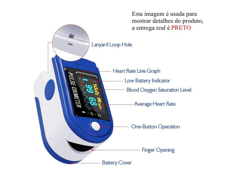 Oxímetro de Pulso Medidor de Dedo Saúde Digital oled Spo2 Monitor de Freqência Cardíaca Saturação de Oxigênio no Sangue Taxa de Pulso Cor Preto