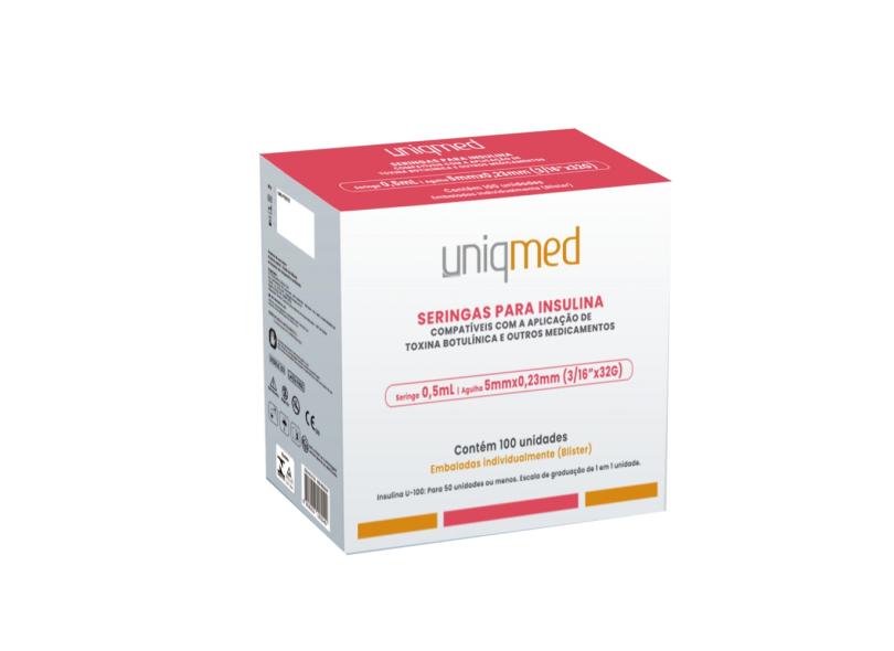 Seringa para Toxina Botulínica Botox 0,5mL 5mmx0,23mm 3/16 x 32G c/100 Uniqmed