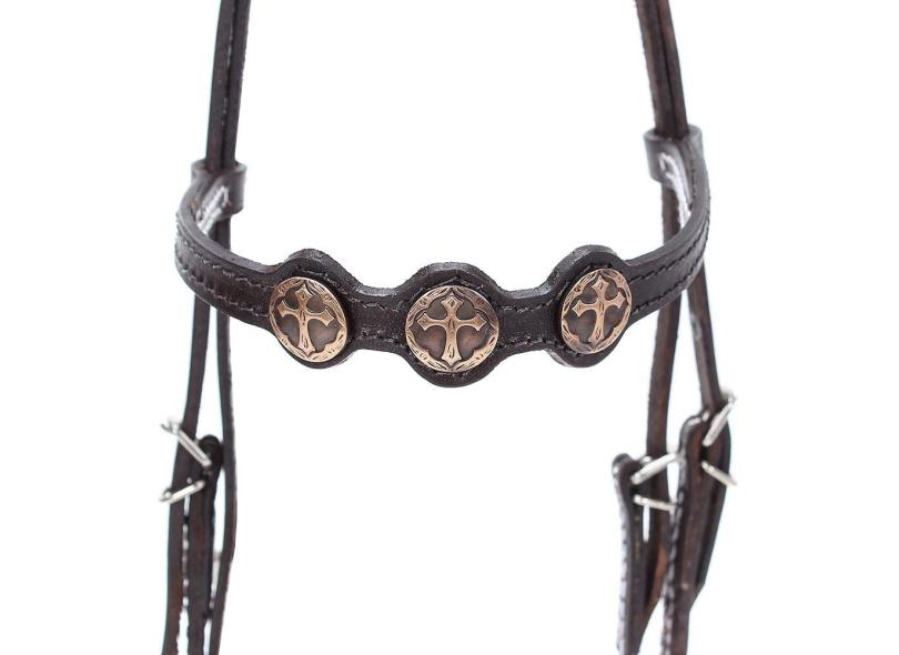 Cabeçada de Couro para Cavalo com Testeira Bronc-Steel Marrom 21906