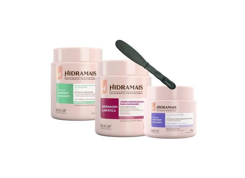 Creme Relaxante+Drenagem Linfática+Esfoliante Hidramais+Espátula - Li
