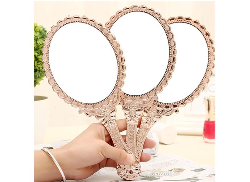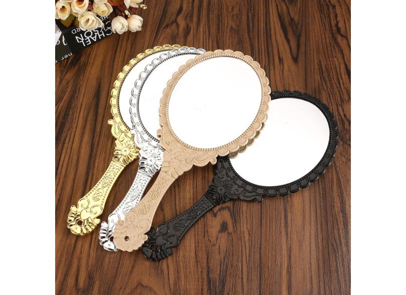 Espelho de maquiagem cosmético portátil vintage para mão segurando espelho redondo oval nobre restaurar ferramentas antigas de espelho de corte