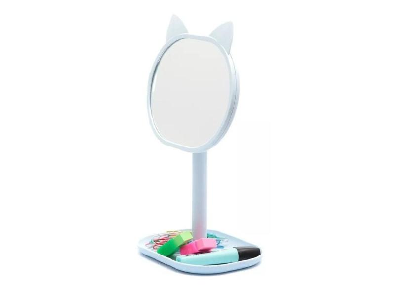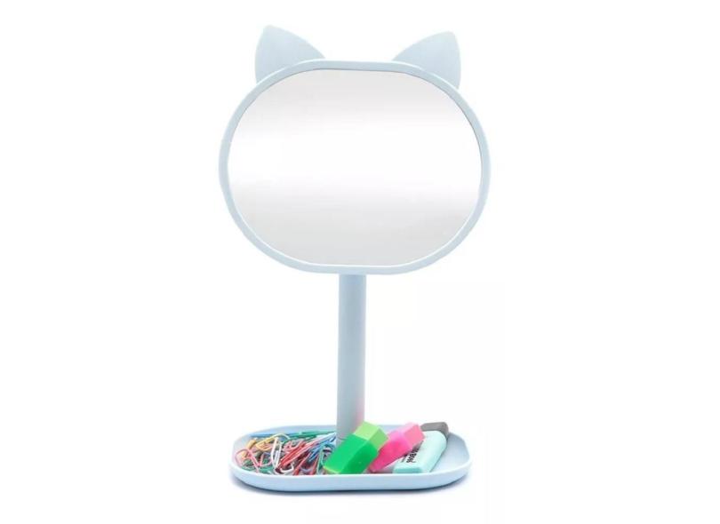 Espelho De Mesa Gatinho Com Bandeja Para Maquiagem