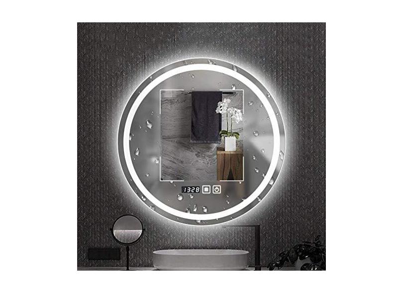 Espelho de penteadeira, espelho retroiluminado de LED, espelho de maquiagem com botão de toque, relógio eletrônico antiembaçamento para quarto, banheiro, corredor