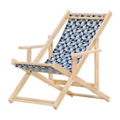 Espreguiçadeira Preguiçosa Dobrável Sem Braço Madeira Maciça Com Tecid