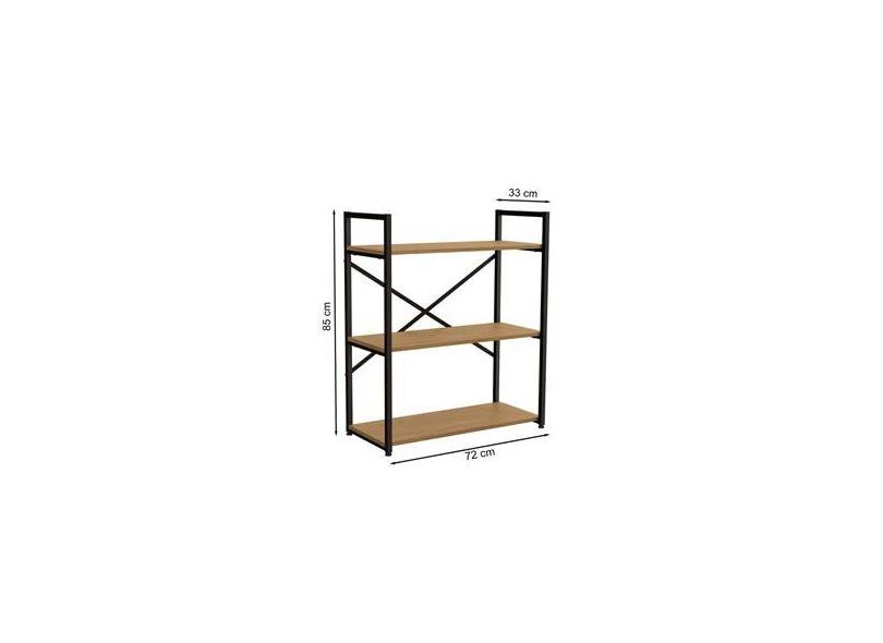 Estante Industrial Baixa 3 Prateleiras Crome LI007 Freijó e