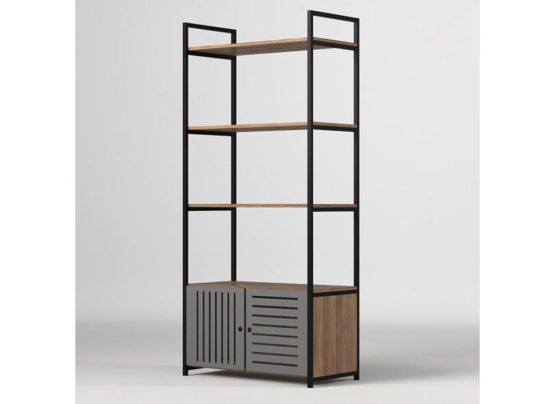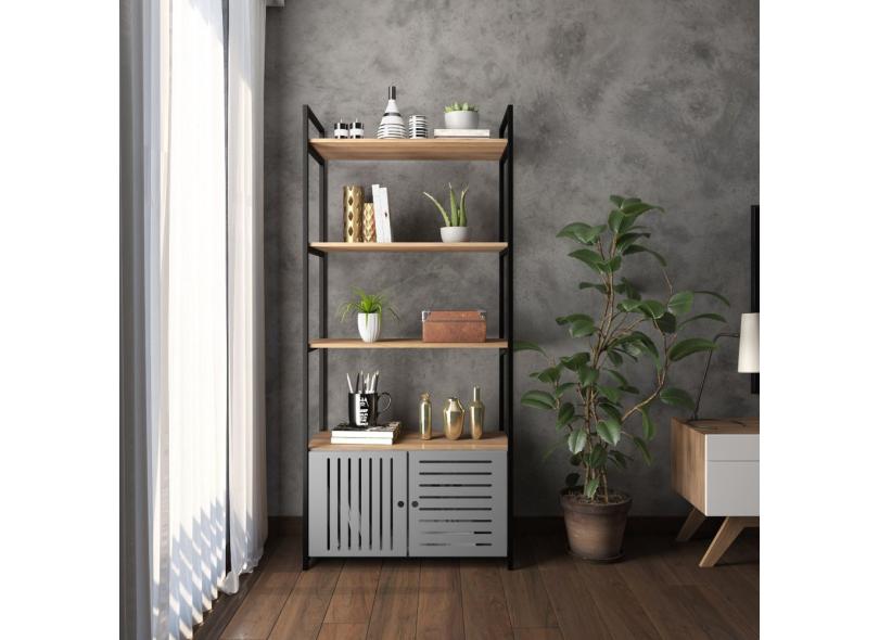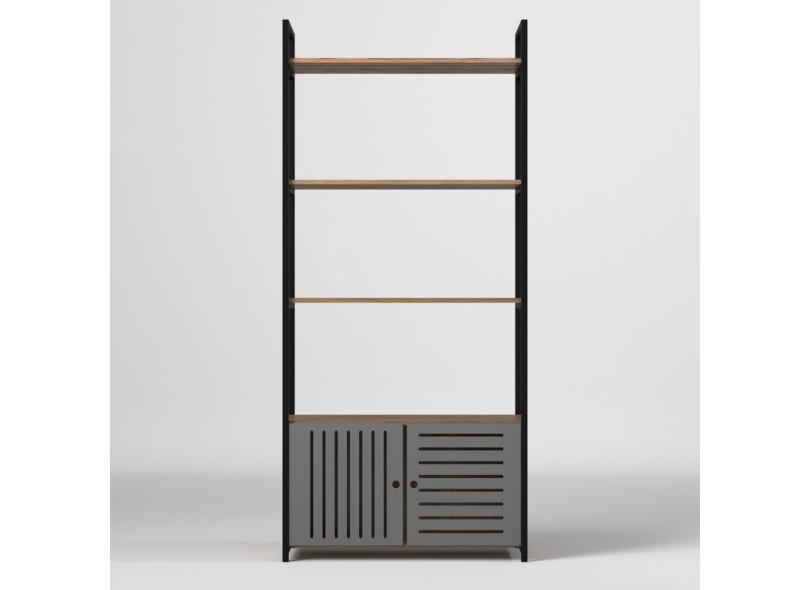 Estante Sala Escritório Estilo Industrial Com Portas De Metal Vazadas