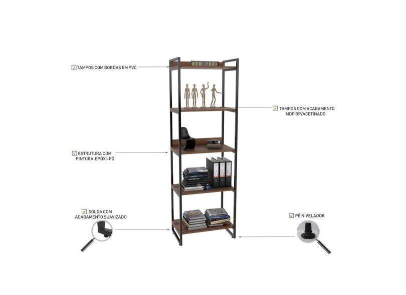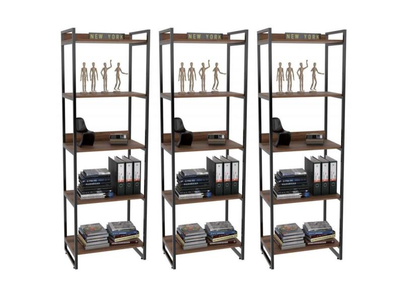 Kit 3 Estantes Estilo Industrial 60cm 5 Prateleiras Nogal