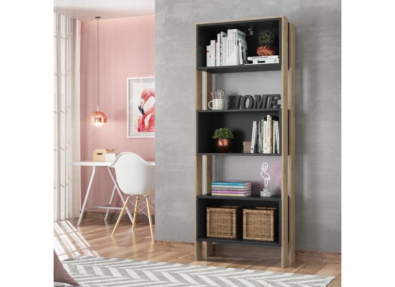 Livreiro com Nicho Qmovi Cor Carvalho Rustico Fosco