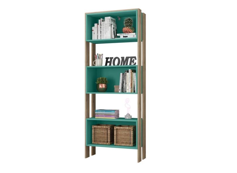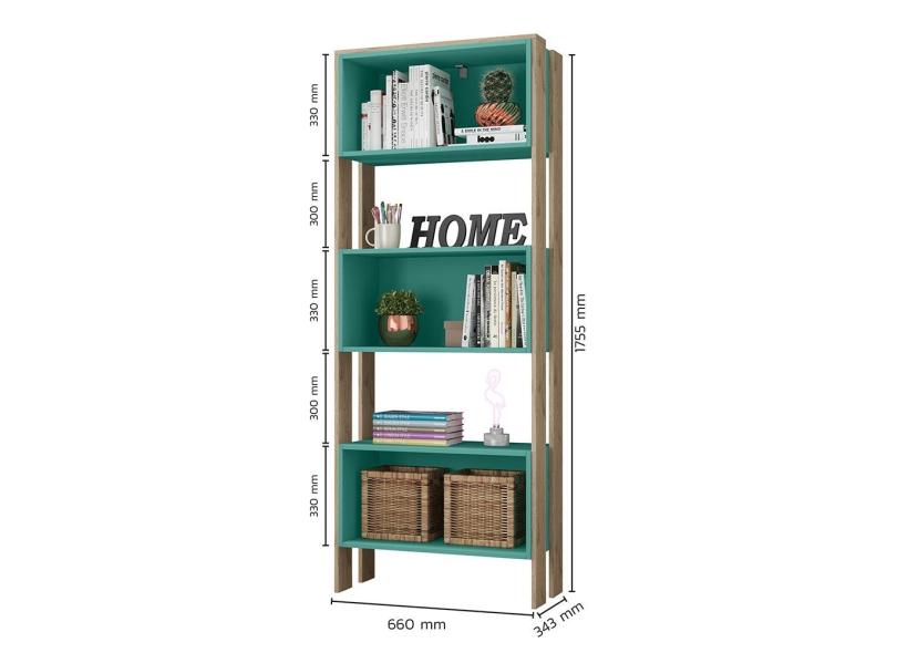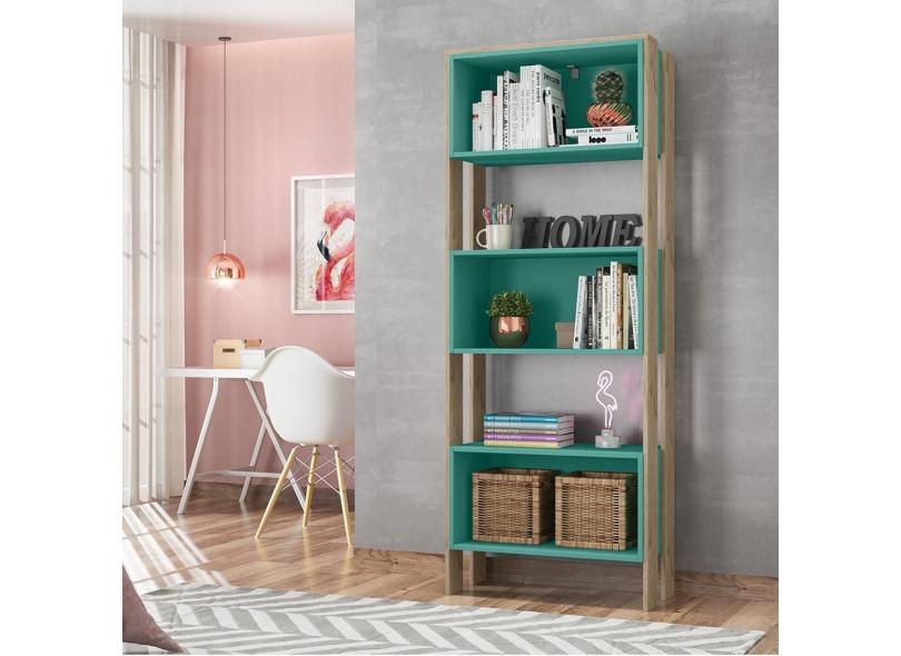Livreiro com Nicho Qmovi Cor Carvalho Rustico Turquesa