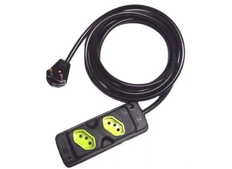 Extensão Elétrica Cabo PP Protegido 2x1,5mm 5 Metros 10/20A 2 Tomadas