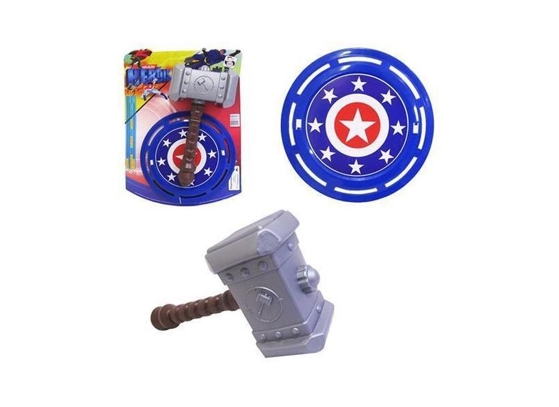Brinquedo Kit Martelo Thor Infantil Batalha Com Escudo