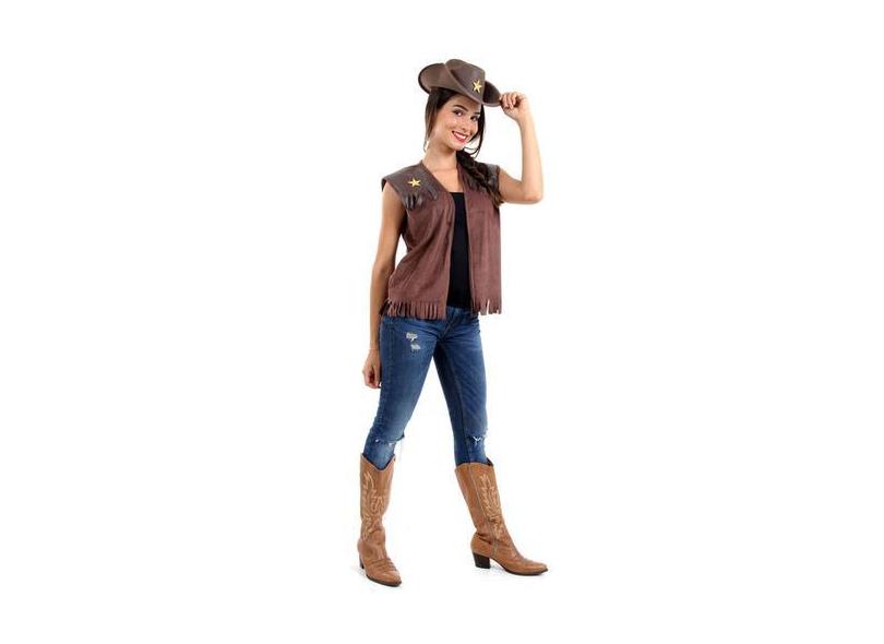 Conjunto Cowgirl Com Chapéu Adulto - Festa Junina