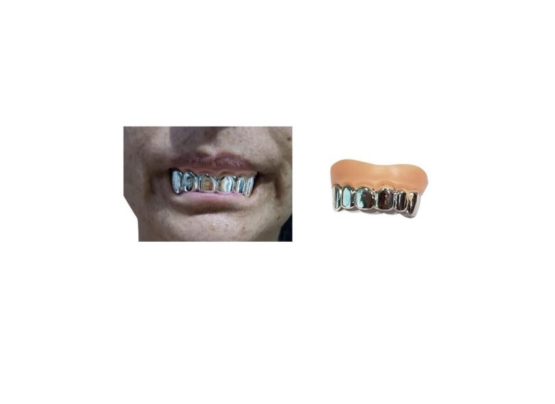 Dentadura Prata de Vampiro drácula modelo 2 fantasia