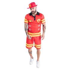 Fantasia Bombeiro Adulto Masculino Profissões Com Chapéu - Fantasias C