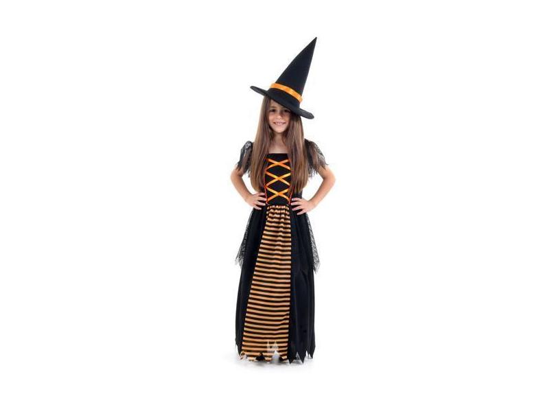 Fantasia Bruxa Laranja Vestido Longo Infantil Com Chapéu - Halloween