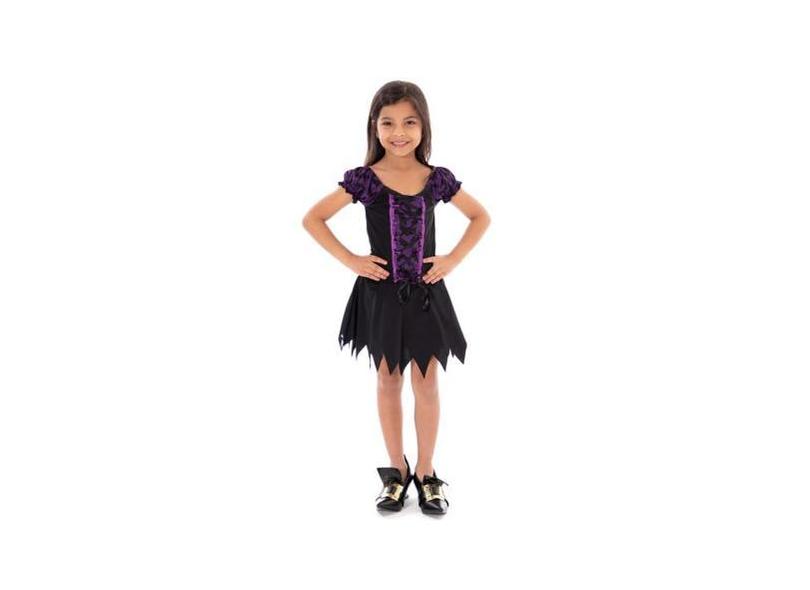 Fantasia Bruxa Morceguinho Infantil, Vestido Halloween Roxo - Fantasia