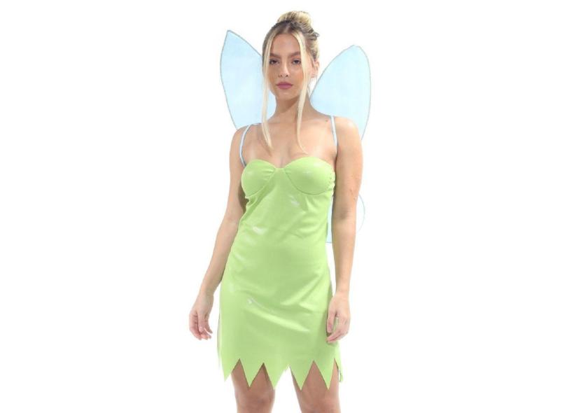 Fantasia Carnaval Fada Verde Feminino Adulto Vestido c/ Asas