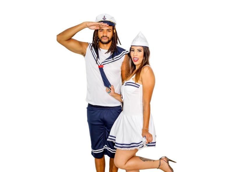 Fantasia de Casal Marinheiro Capitão Comandante Marinheira Marujo Navegador Adulto Cosplay Carnaval Halloween