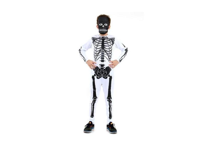 Fantasia Esqueleto Branco E Preto Infantil Longo Com Máscara - Hallowe